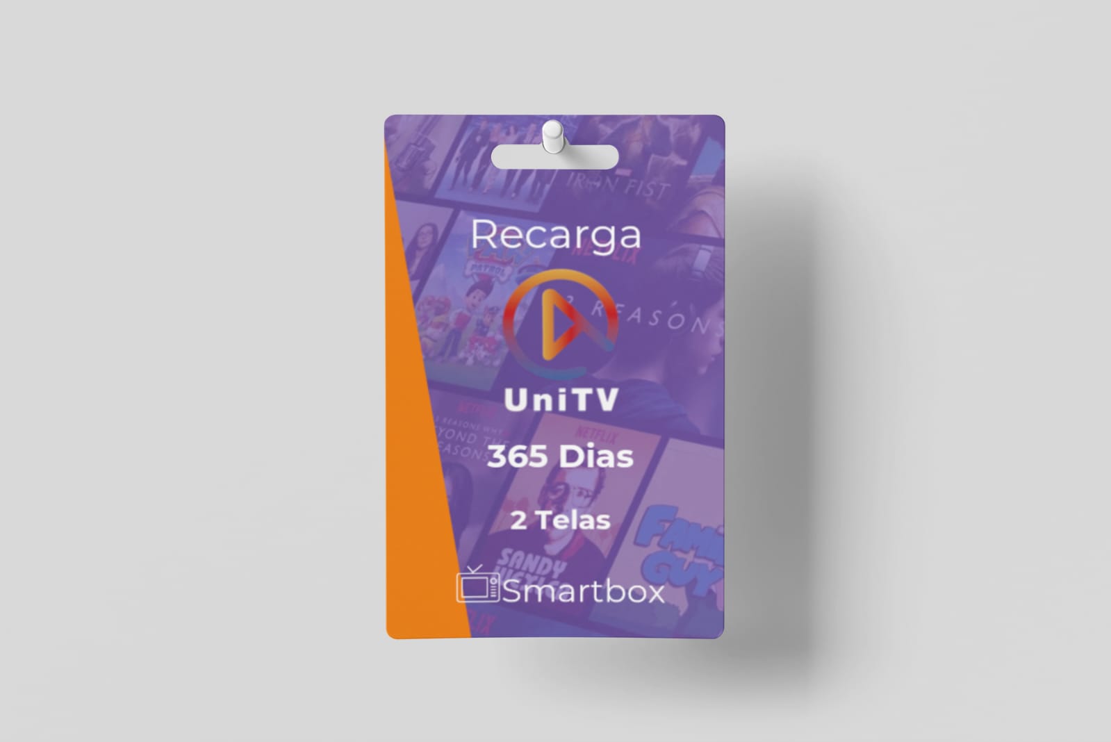 Recarga Unitv Anual pra 2 Telas válido por 365 dias. Envio automático pelo WhatsApp e e-mail. Receba seu código em menos de 3 minutos. Envio 24h por dia inclusive aos domingos e feriados. Garantido Menor preço da internet..